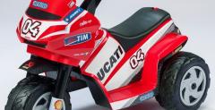 W ofercie Ducati znajdzie się coś nawet dla rocznego dziecka. Najmniejszy model napędzany jest dwoma silnikami 25W, ma on jeden bieg i akumulator 6V/4,5Ah. Prędkość maksymalna to jedyne 2,7 km/h. Ducati 6V może być Twoje za €79,70 (niecałe 350 zł).